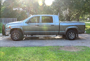 Dad raised his truck, since it was itermittently scraping the front and needed greater road clearance. You will notice that the front of the truck rides higher in the After picture. Recently we used the winch to pull ourselves out of a gully. The winch was made in China and broke after one use. Dad highly recommends Warn winches. Other good winches are Mile Marker and Smitty Built.