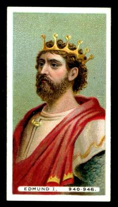 King Edmund I reigned from 939 until his death in 946. He was 17 years old when he began to reign. Shortly after his successsion, King Olaf III of Guthfrithson conquered Northumbria and the Midlands. Upon Olaf’s death in 942, Edmund regained the Midlands, and reconquered Northumbria two years later. He then defeated the Norsemen in Cubria and extended his rule to include Southern Scotland. This united England under his rule. He conquered Strathclyde in 945 but gave it to King Malcolm I of Scotland for a peace treaty. He was murdered at the age of 24 at a feast at Pucklechurch, Gloucestershire, on St. Augustine’s day of 946.