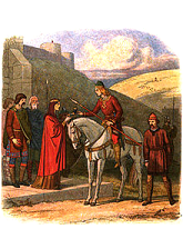 In 1064, Earl Harold Godwinson was shipwrecked at Ponthieu. He was captured by Guy, Count of Ponthieu, and taken to Guy’s castle at Beaurain. Shortly thereafter Duke William ordered the earl and his retainers to be transferred to his own castle. Having earlier suppressed a Welsh uprising, Harold helped William to suppress a Bretish invasion. Norman documents state that William then knighted Harold, and that Harold swore fealty to William on sacred relics.